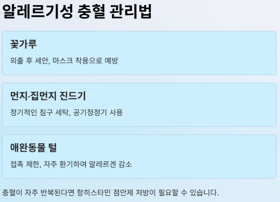 이 경우에는 알레르기 유발 물질을 피하는 것이 최선이며, 다음과 같은 실천이 필요합니다.