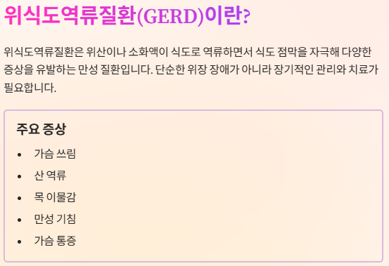 식도 점막을 자극해 다양한 증상을 유발하는 만성 질환입니다.